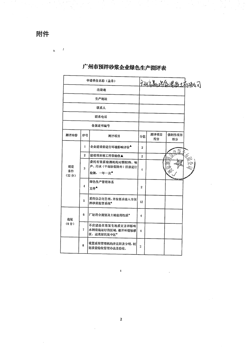 广州市散装水泥管理办公室关于广州市加业混凝土有限公司预拌砂浆企业绿色生产测评情况的公示